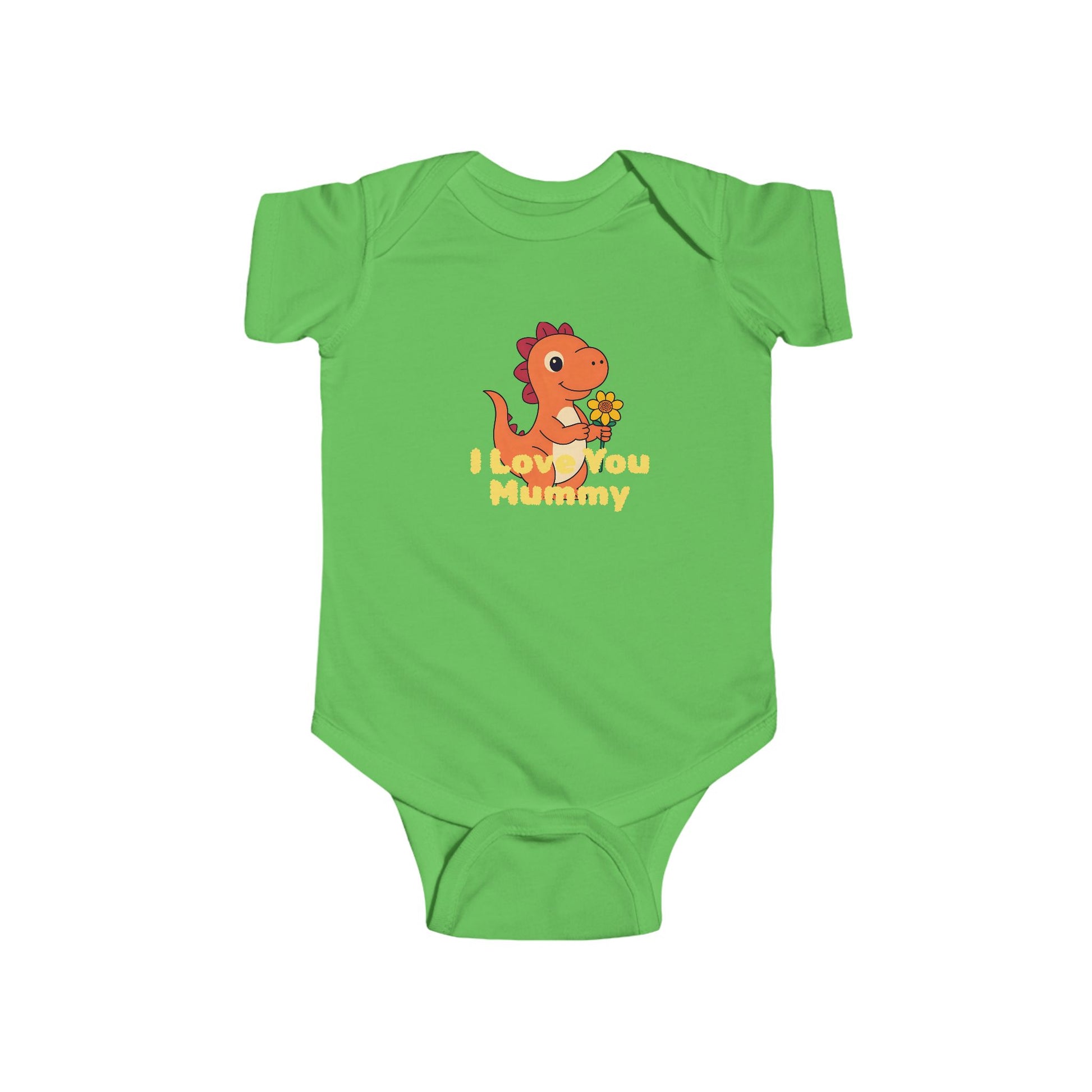 This cute dinosaur baby bodysuit is the perfect clothing item for infants. Made from specially spun fibers, it is strong and smooth, perfect for printing. With side seams and ribbed knit binding, it offers structural support and freedom of movement. Features snaps for easy closure. Suitable for children, this bodysuit is REACH certified and made in India.