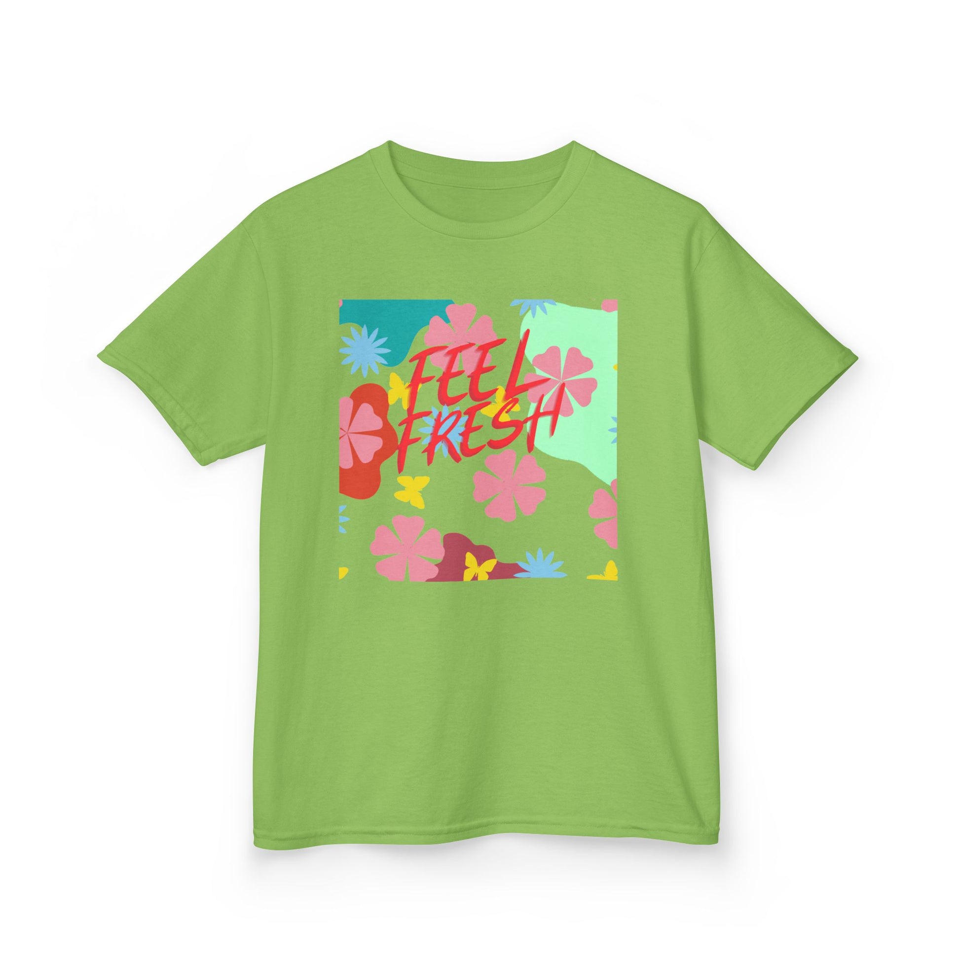 A cute and colorful kids floral tee shirt that exudes joy and playfulness. Perfect for young children who love to express themselves through their clothing. Ideal for everyday wear, playdates, birthdays, and family outings.